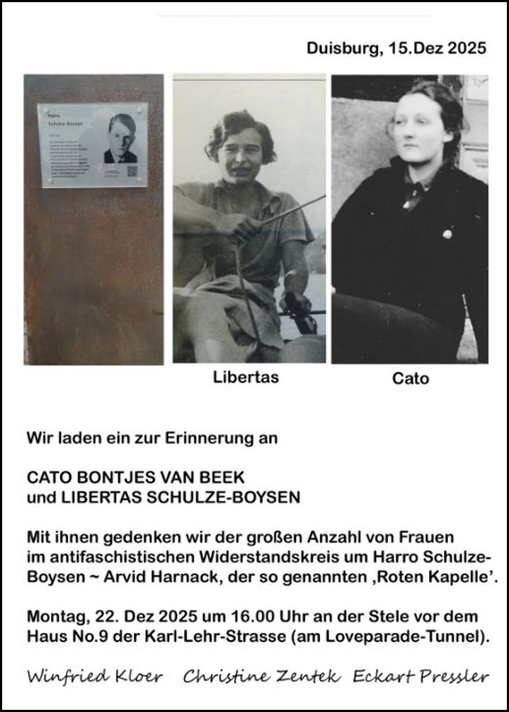 Die Einladung zum Gedenken an zwei mutige Frauen, die ihren Widerstand gegen das Naziregime mit dem Leben bezahlten, leite ich gerne weiter.