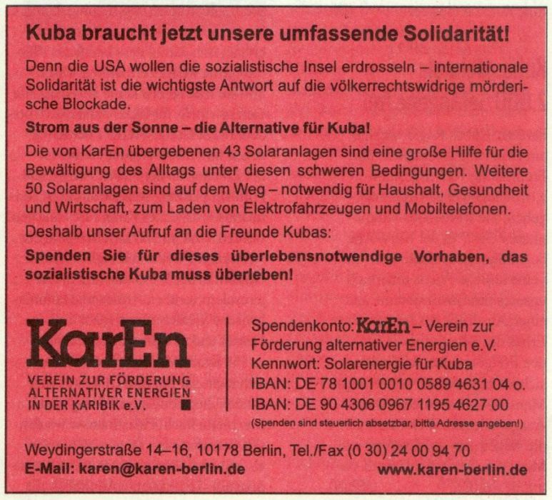 Die Besucher der Buchhandlung Weltbühne werden gebeten, Kleingeld in die Kuba-Spendendose auf dem Ladentisch zu füllen!