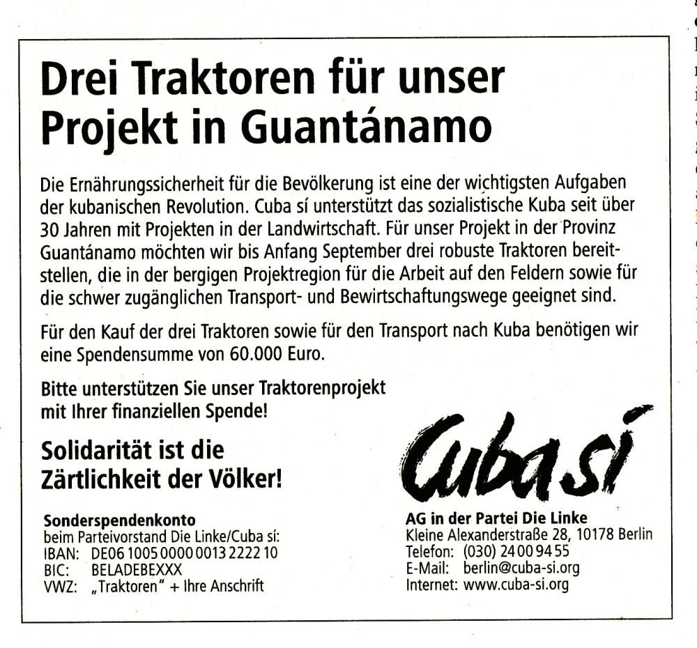 Bitte unterstützt die internationale Solidarität, die von der Linkspartei für Kuba geleistet wird.